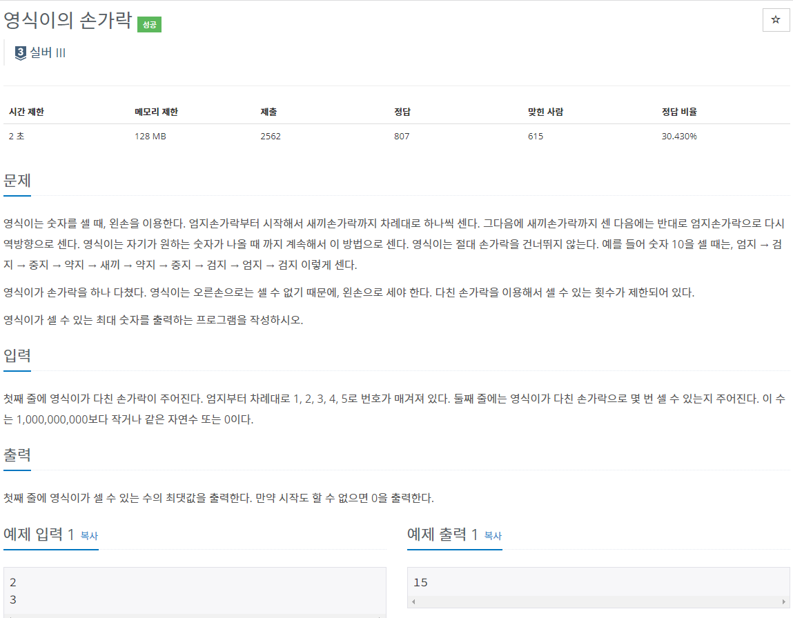 1614번: 영식이의 손가락