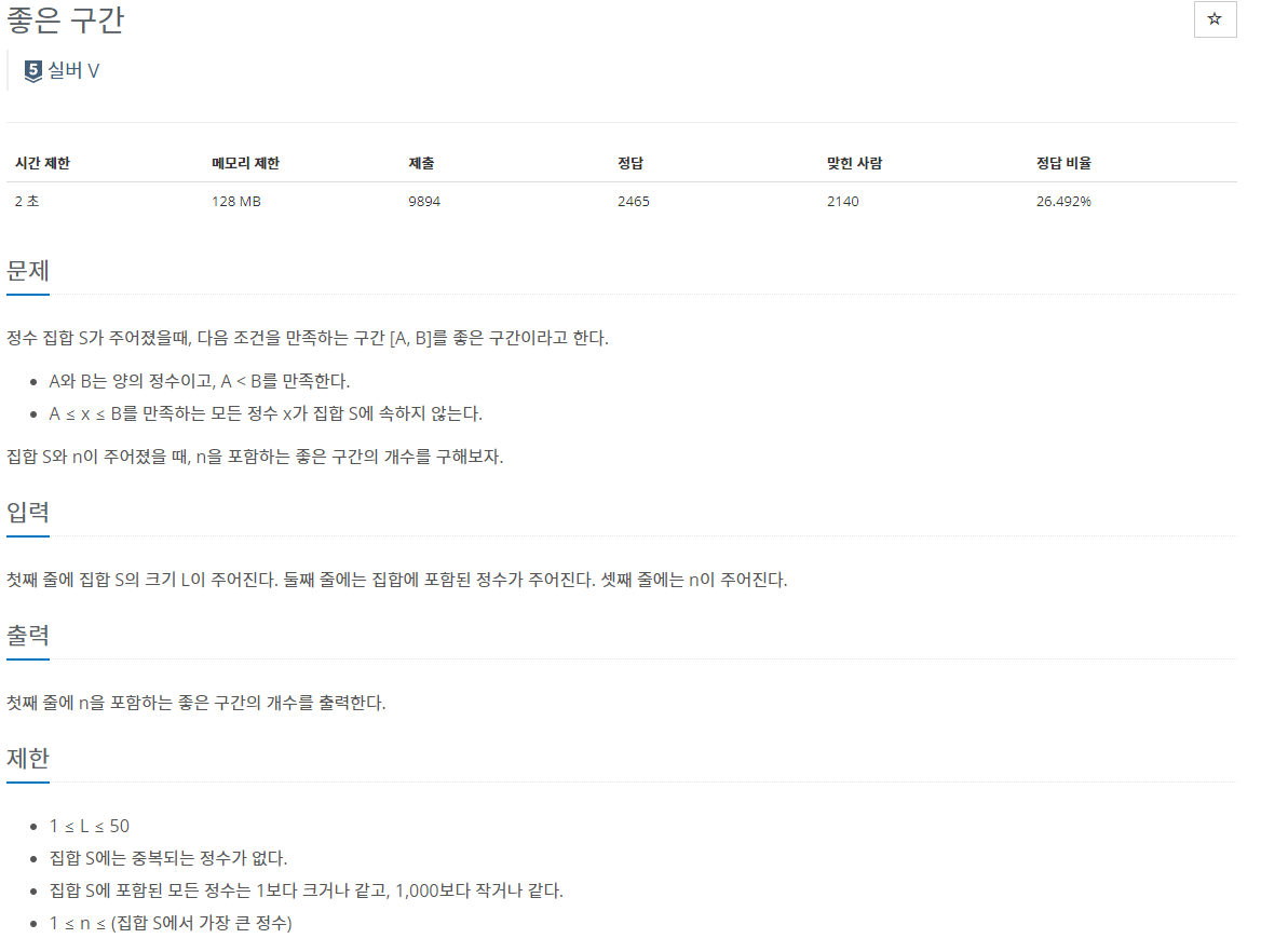 1059번: 좋은 구간